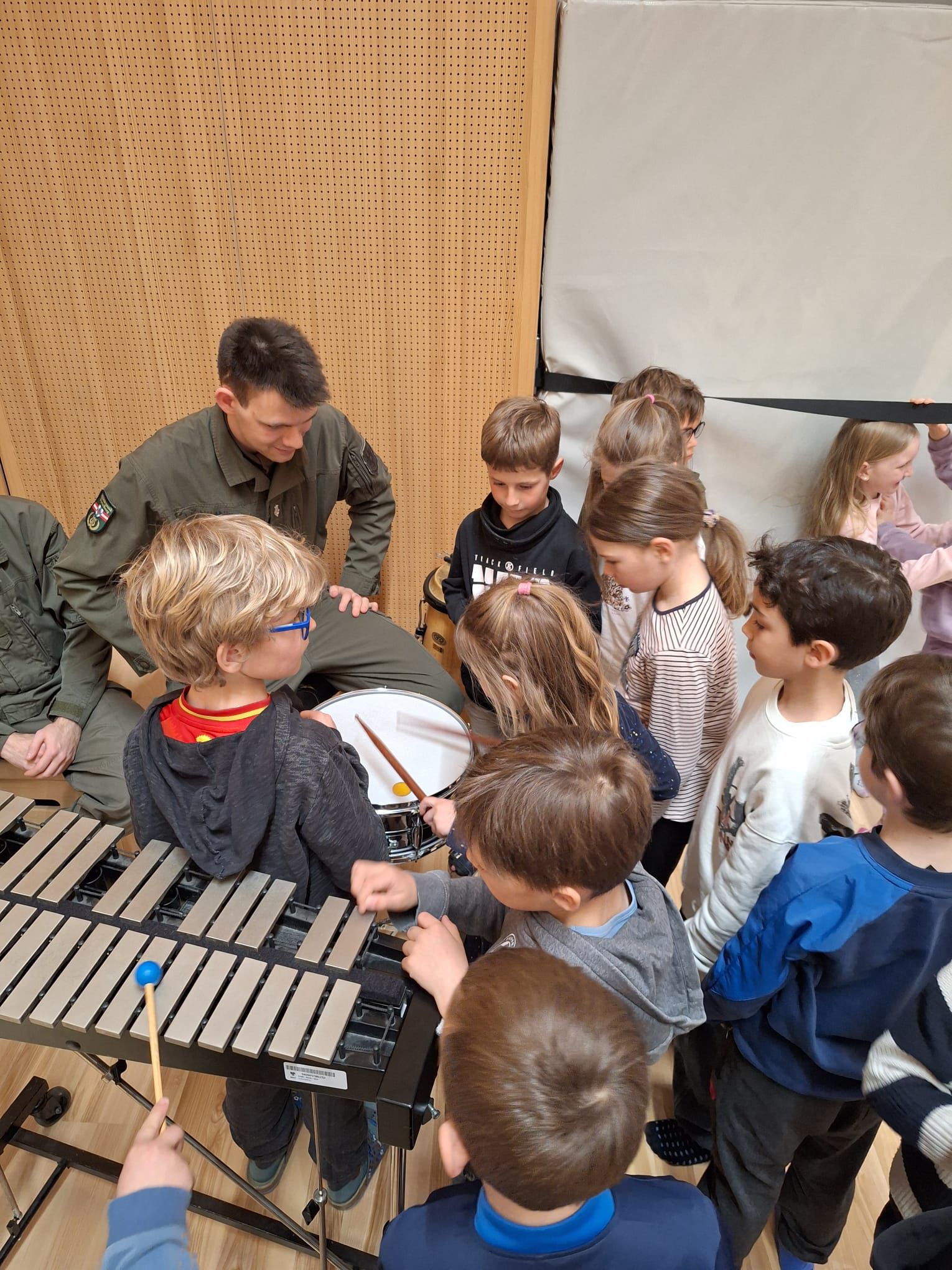 Am 17.03. war die Militärmusik Vorarlberg zu Besuch in der Volksschule Andelsbuch und hat den Schüler:innen auf lustige und unterhaltsame Art und Weise einige Instrumente präsentiert.